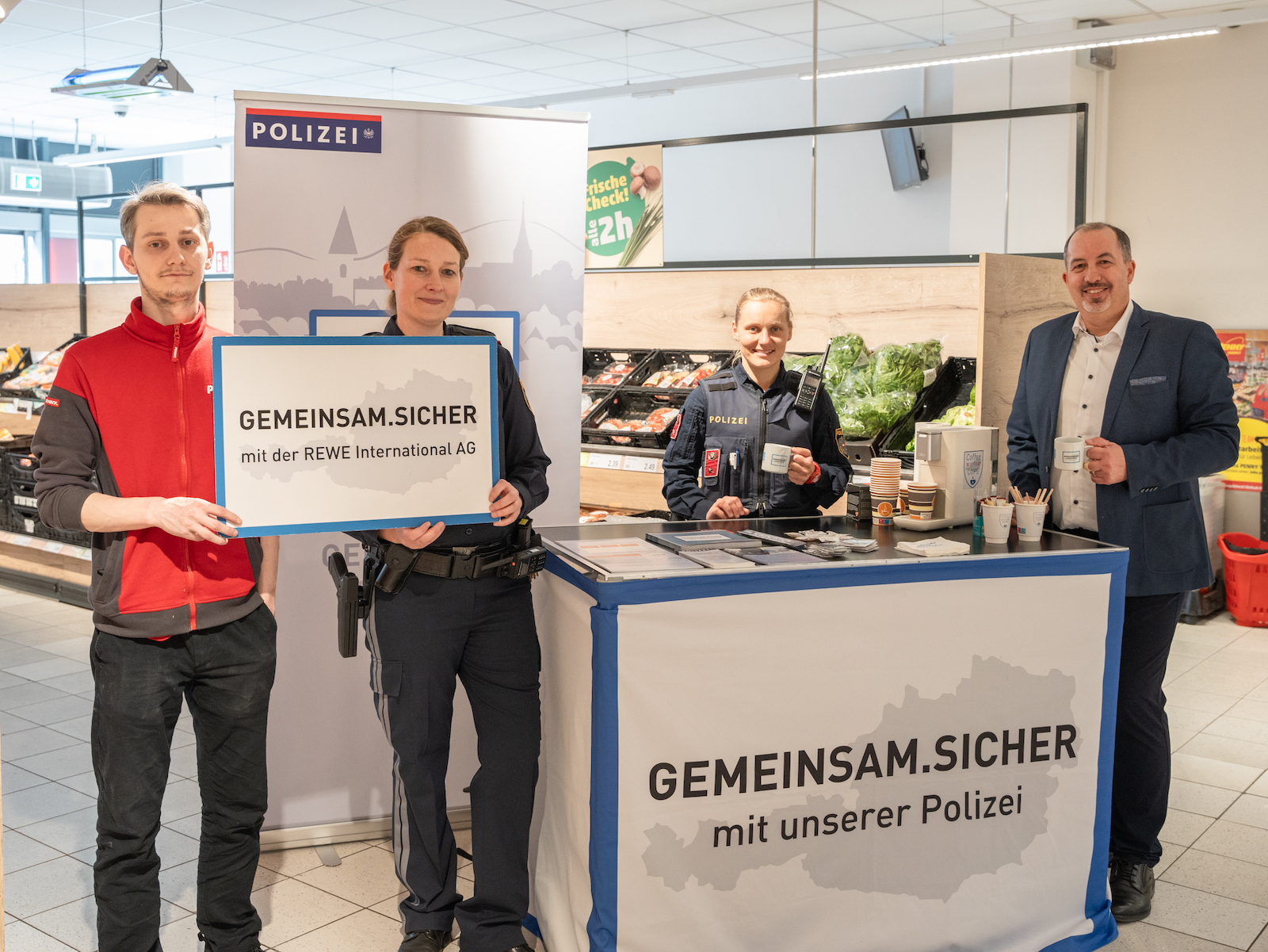 Mit der Aktion „Coffee with Cops“ im Zuge der Initiative „GEMEINSAM.SICHER“ des Bundesministeriums für Inneres setzt PENNY ein Zeichen für die Sicherheit und das Wohlbefinden der Zivilbevölkerung.